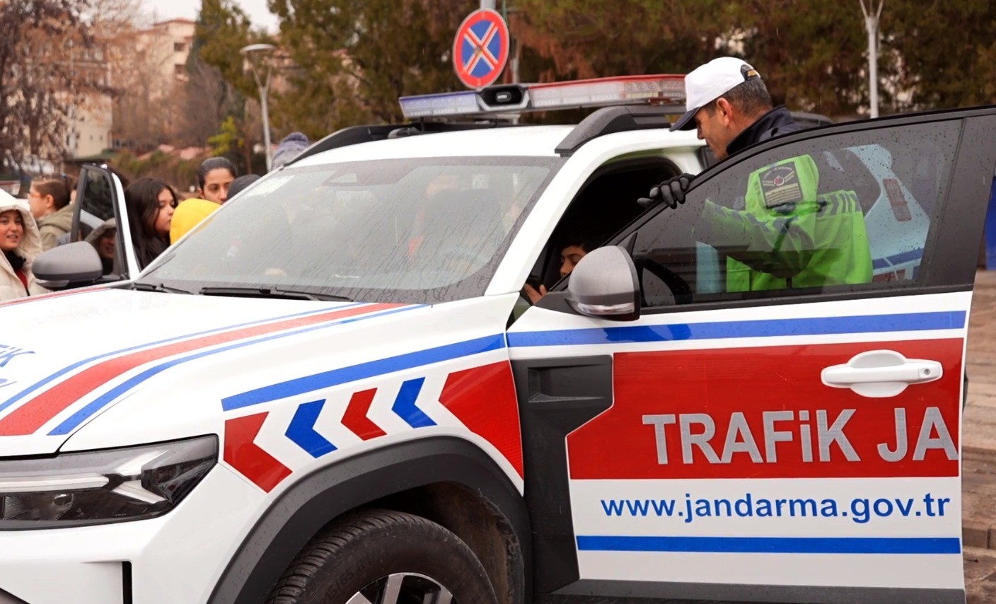 Etkinlik kapsamında öğrenciler ayrıca jandarma trafik aracına bindirilerek megafonla anons yaptı ve siren çaldı. Eğlenceli anların yaşandığı bu deneyim, çocukların trafikte güvenlik bilincini pekiştirdi.