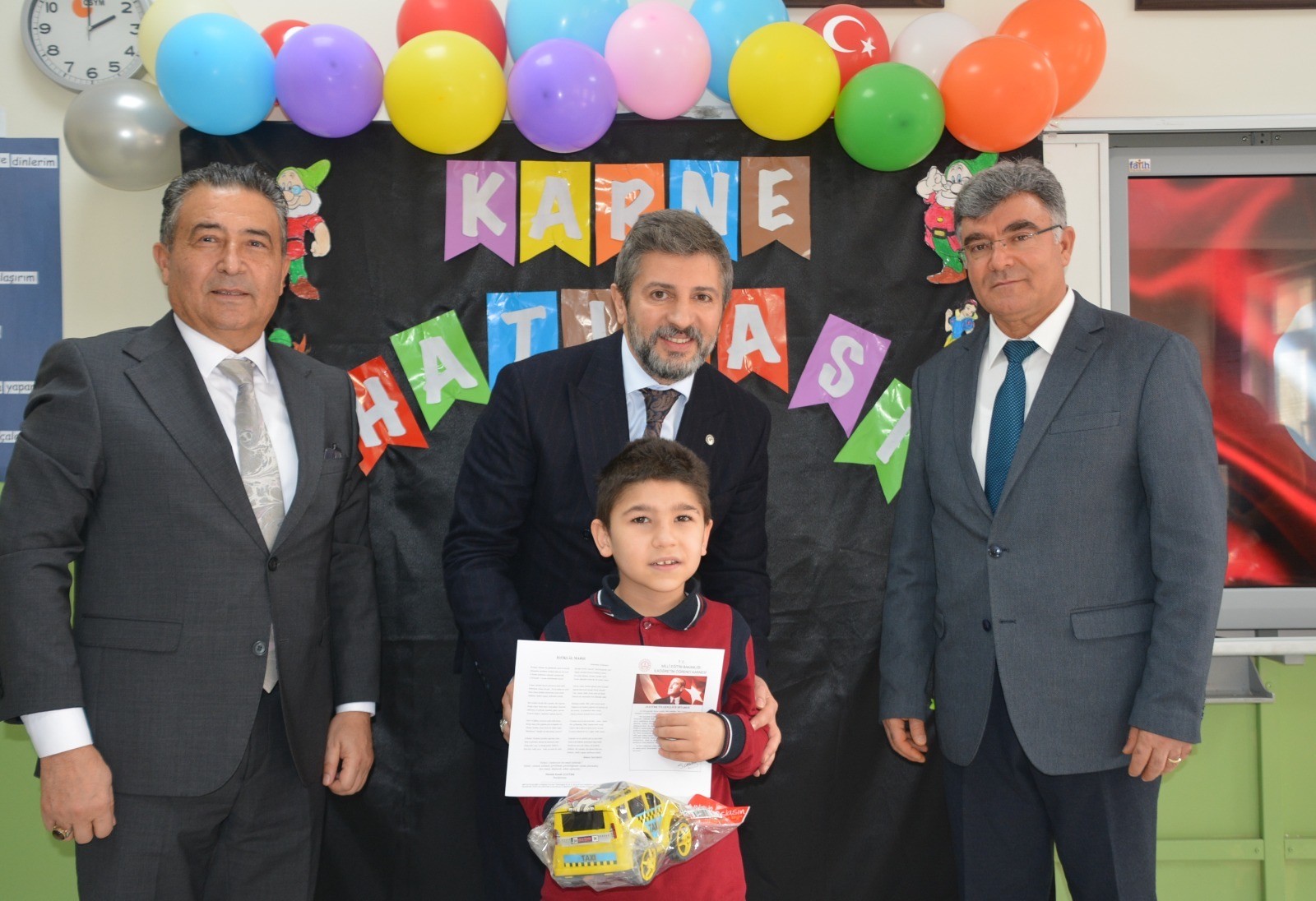 Mehmet Ali Eren İlkokulu’nda gerçekleştirilen programda konuşan Genel Müdür Mete, Millî Eğitim Bakanı Yusuf Tekin’in selamlarını ileterek, tatil öncesi öğrencilerle, öğretmenlerle ve velilerle bir araya gelmekten duyduğu memnuniyeti dile getirdi. Mete, “Yoğun geçen bir dönemin ardından iki haftalık yarıyıl tatiline giriyoruz. Tüm öğrencilerimize iyi tatiller diliyorum. İnşallah yeni dönemde de sağlıklı ve başarılı bir şekilde tekrar buluşuruz.” dedi.
