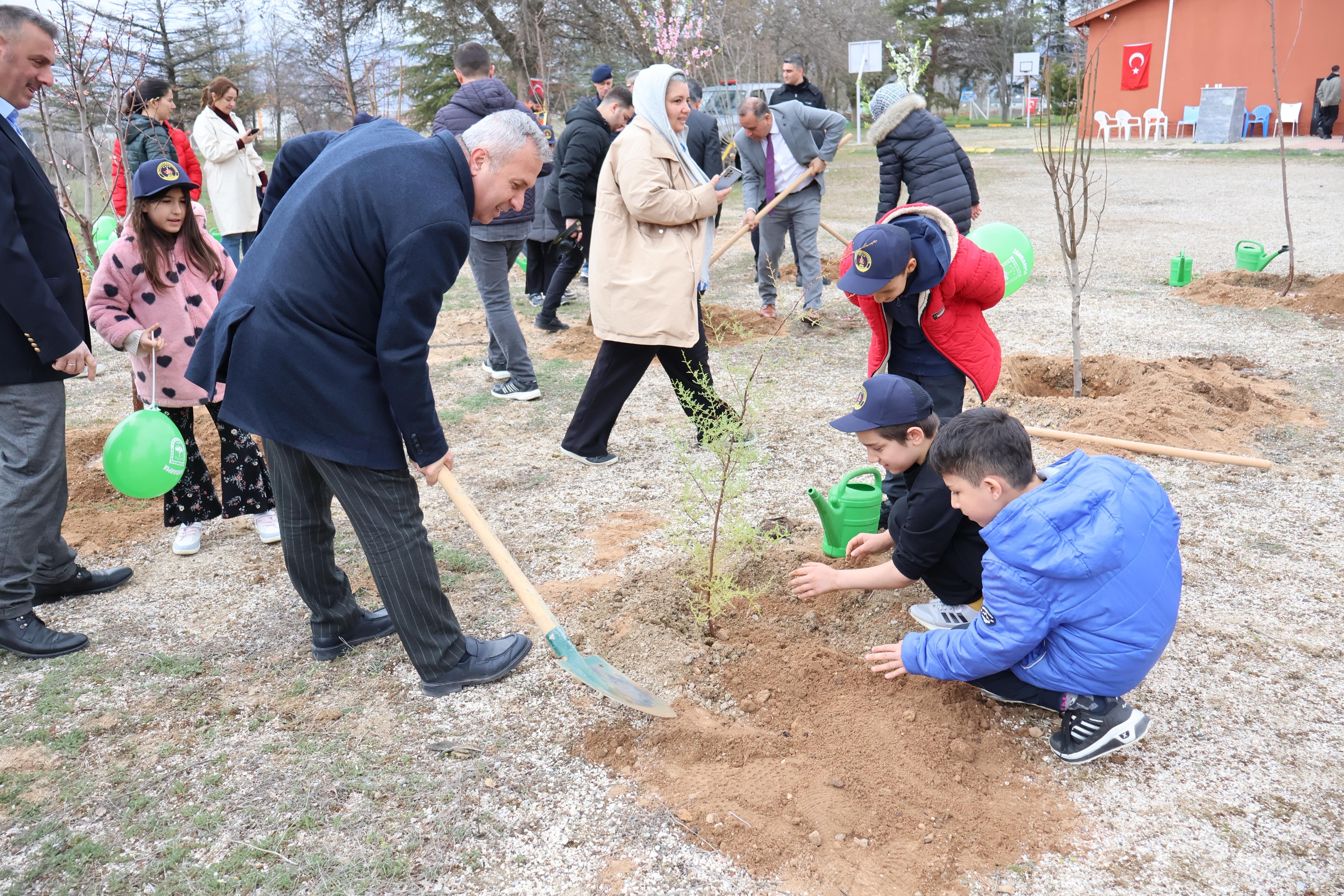 KIRIKKALE-26.03.2026- Kırıkkale’de 21–26 Mart Orman Haftası kapsamında düzenlenen fidan dikim etkinliği, geleceğe umut oldu. Hasandede Orhan Demirhan İlkokulu’nda gerçekleştirilen etkinlikte öğrenciler, protokol üyeleriyle birlikte fidanları toprakla buluşturdu.
