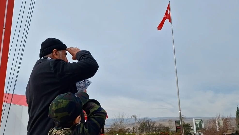 Programda duygusal anlar yaşanırken minikler, şehit anne ve babasıyla birlikte Türk bayrağı altında selam vererek saygı duruşunda bulundu.