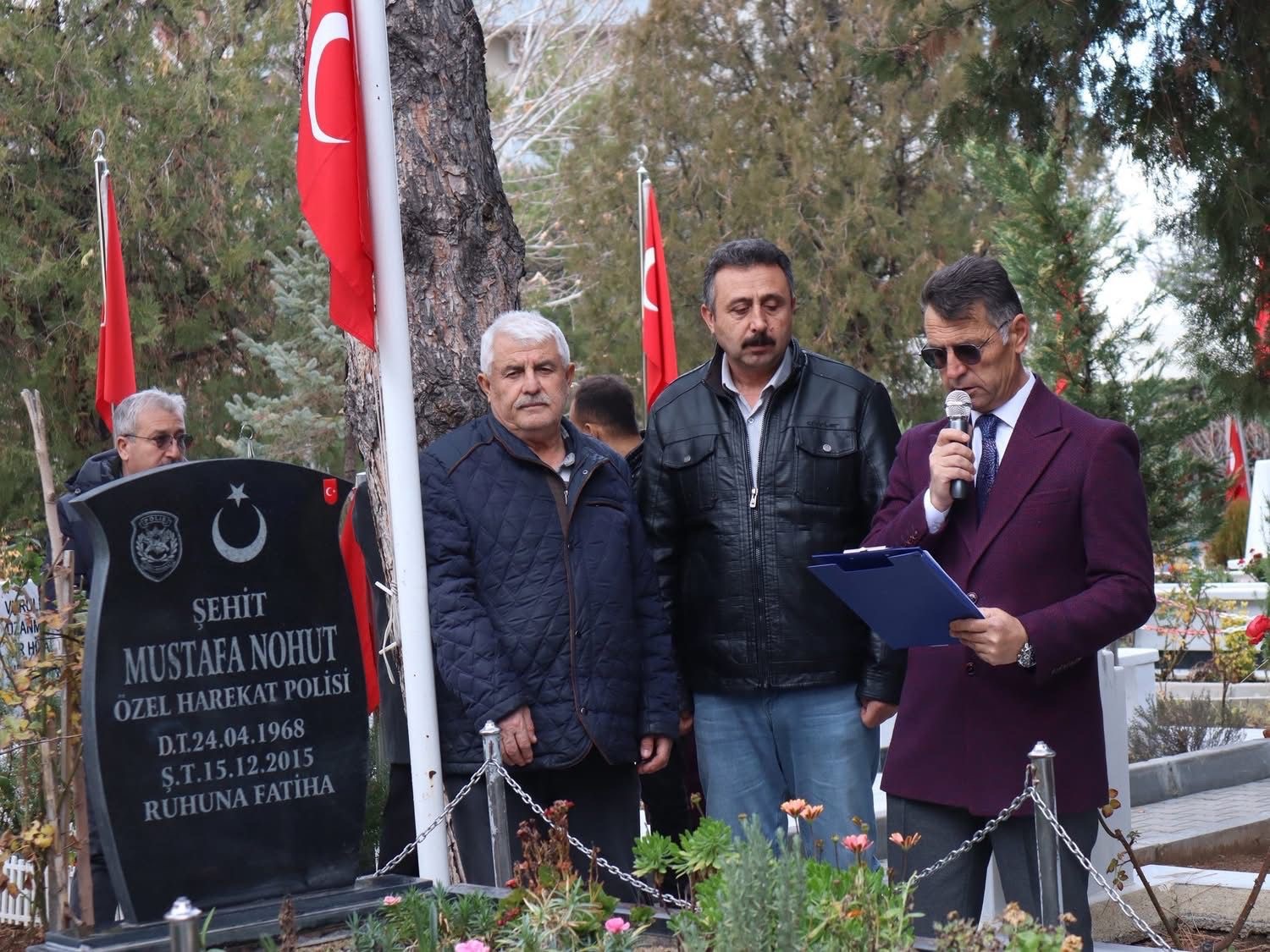 Dernek Başkanı Rıfat Öcal, şehit Mustafa Nohut’un meslek hayatına Bitlis Emniyet Müdürlüğü’nde başladığını, Özel Harekât birimlerinde uzun yıllar görev yaptığını ve 15 Aralık 2015’te Diyarbakır’ın Silvan ilçesi yakınlarında zırhlı aracın mayına basması sonucu şehit düştüğünü belirtti.